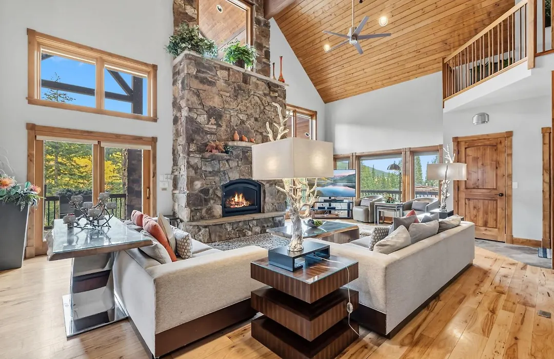 Stunning 6Br Lodge W Beautiful Mt Quandary Views Blue River ligt binnen 3 km van Spruce Creek Trail en nodigt gasten uit om te ontspannen op een patio.